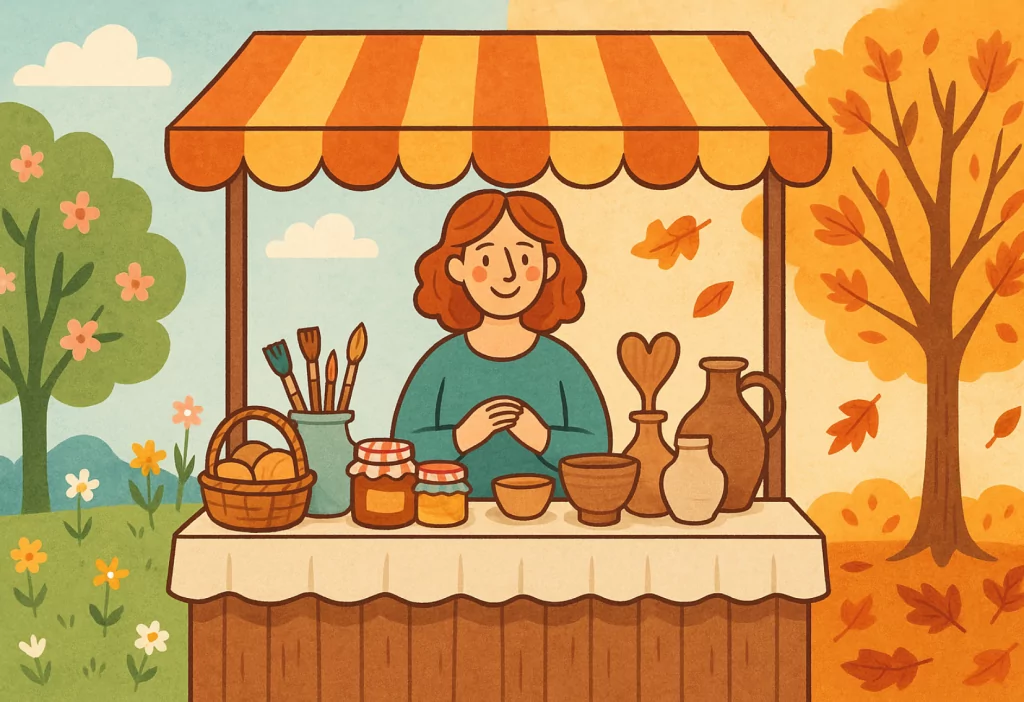 - Handgemachtes & Handwerk (z. B. Holzarbeiten, Keramik, Textiles, Schmuck)